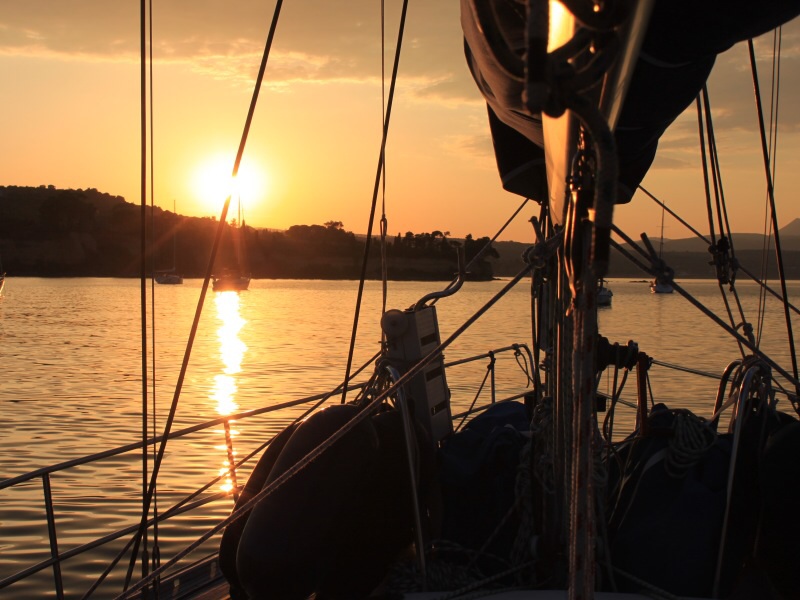 Am Abend gibt es noch einen schönen Sonnenuntergang in Koroni. Am nächsten Tag geht es leider unter Motor nach Pirgous Dirou. Wir befinden uns nun am 2. Finger auf der Halbinsel Mani. Das Ankermanöver müssen wieder mal im strömenden Regen machen. Leider heißt es nochmal Anker auf – natürlich im Regen, denn wir sind zu knapp bei den Fischerbooten. Am Abend ist die Windstärke zwischen 20-30 kn und leider auch drehend. Wir sind zwar das einzige Segelboot in der Bucht, aber wegen des drehenden Windes beschließen wir Ankerwache zu gehen. Um 02:00 beruhigt sich das Wetter und wir beschließen die restlich verbleibende Zeit zu schlafen.