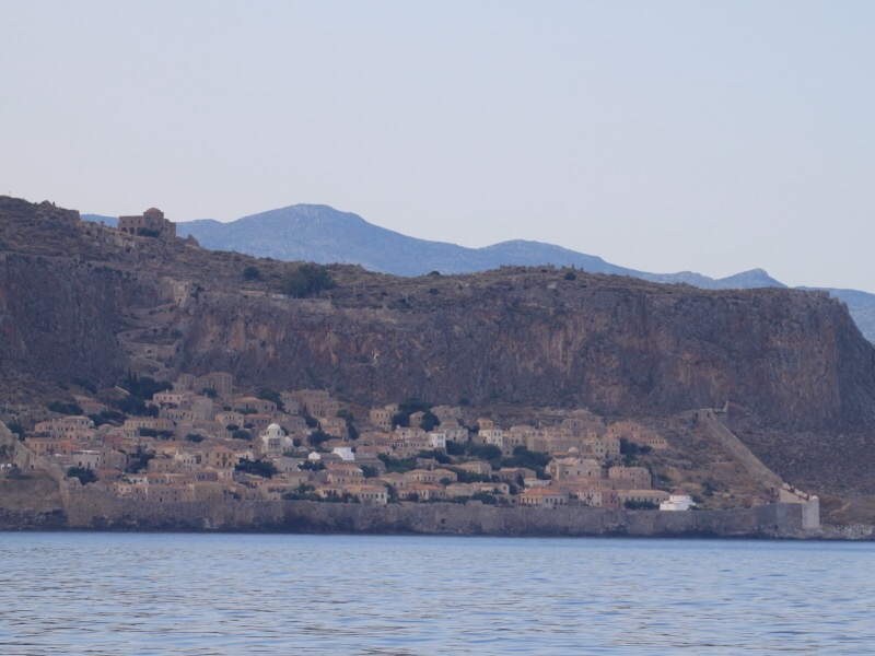 Nach einer sehr schaukeligen Nacht, geht es relativ zeitig Anker auf. Müssen heute auf jeden Fall 30 sm machen und es wird wahrscheinlich eine Kreuz. Und wie recht wir hatten. Das Südkap konnte es recht gut – Winde zwischen 2 und 22 Knoten – Winddreher von 60 Grad und Last but not least – die Autobahn der Frachter.  8 Frachter in der unmittelbaren Umgebung sind keine Seltenheit. Nach der Rundung des Kap Maleas wird der Wind immer weniger und auch das ausreffen hilft nichts mehr – zu wenig Wind – also motoren. In der „Marina“ Monemvasia bekommen wir noch einen Liegeplatz. Der Anker fällt auf 5m und netten Niederösterreicher helfen beim Anlegen. Wir haben gemeinsame Freunde – die Welt ist klein.