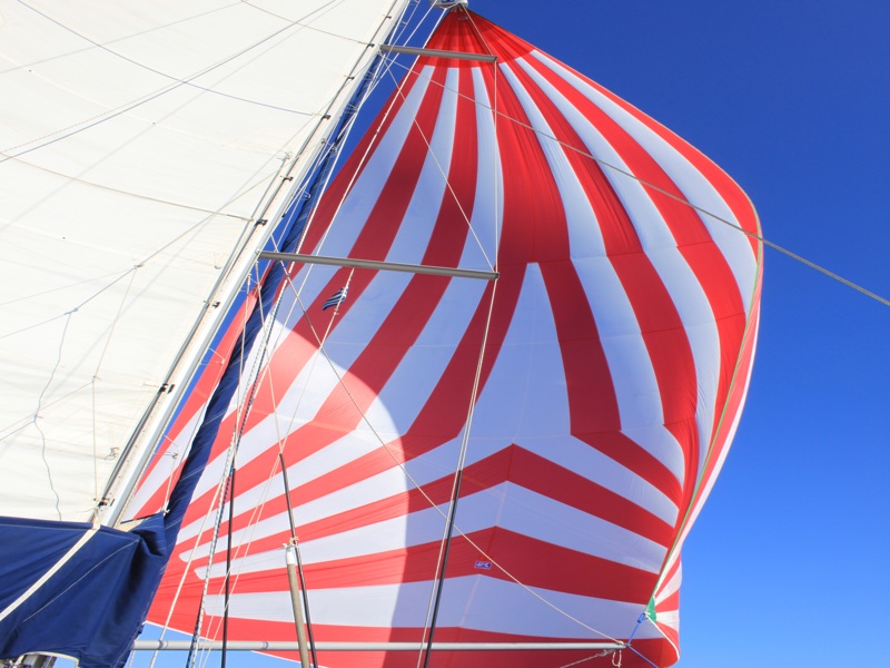 Der Spi geht und die Genua kommt. Wir segeln schon mit achterlichen Wind und müssen dem albanischen Hoheitsgebiet ausweichen, da passiert es. Die Leine vom Bullenstander (Hilfsleine damit das Großsegel nicht unkontrolliert auf die andere Seite wechseln kann) reisst, gleichzeitig reisst auch die Leine vom Traveller und das Groß geht über. Ausser unserem Schock und den beiden gerissenen Leinen ist nichts passiert. Wir reparieren notdürftig den Traveller und können somit ohne Gefahr das Großsegel bergen. Wir haben inzwischen einen Grundwind von 5 Bft mit Boen von 6 Bft, also Segeln wir nur mit Genua weiter und es geht flott dahin. Leider nicht mehr nach Italien, sondern auf direkten Kurs nach Kroatien.