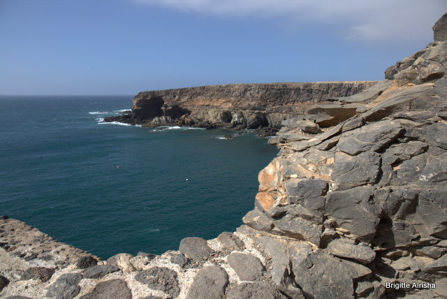 Am Weg über Pajara nach Ajuy bleiben wir noch bei den einen oder anderen Aussichtspunkt (Fénduco 609m) stehen. Einer ist echt toll, da gibt es viele Erdhörnchen, Greifvögel und rabenartige Vögel zu sehen. Ganz majestätisch nützen die Vögel die Aufwinde zum Fliegen, dann jedoch verschwinden die Erdhörnchen in ihren Verstecken. Zum Glück fahre ich mit dem Auto, denn manchmal will ich nicht die Zeit haben, um in den Abgrund zu schauen.