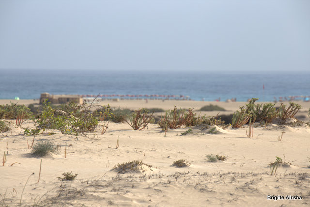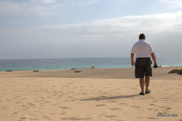 Unsere Hauptattraktion ist eigentlich gleich um die Ecke – der Parque Natural de Corralejo. Durch die Dünenlandschaft geht eine Straße, die sie schon lange sperren wollen. Noch kurz bevor der Park 1982 zum Naturpark erhoben wurde, sind noch schnell zwei riesige Hotelkomplexe in die Dünenlandschaft gebaut worden – absolut hässlich.