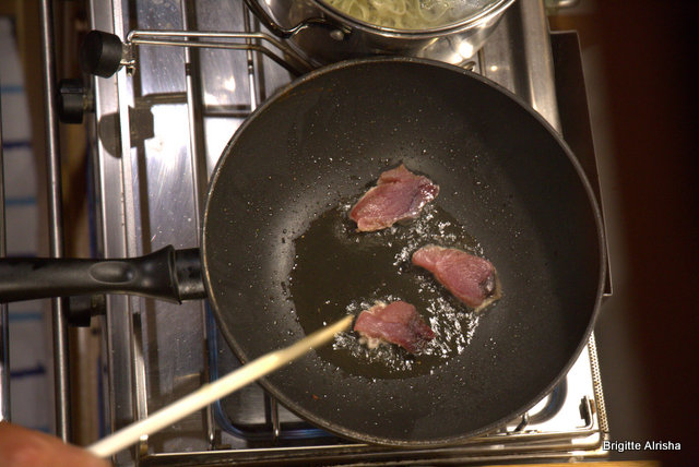 Wir genießen am Abend noch eine Fischsuppe und unseren Thunfisch mit Kochbananen von Ferry – kochen auf höchsten Niveau.