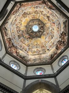 Die Kuppel ist jedoch mit einer Höhe von 107 m und einem Durchmesser von 45 Metern bemerkenswert und trug sich während der gesamten Bauzeit (16 Jahre) sich selbst. Zwischen der innen und Außenkuppel befindet sich eine Treppe. Vasaris konnte das Fresko in der Kuppel nicht mehr fertigstellen. Zuccari beendete das Fresko mit einigen Fehlern, die man auf Grund der Entfernung zum Glück nicht sehen kann.