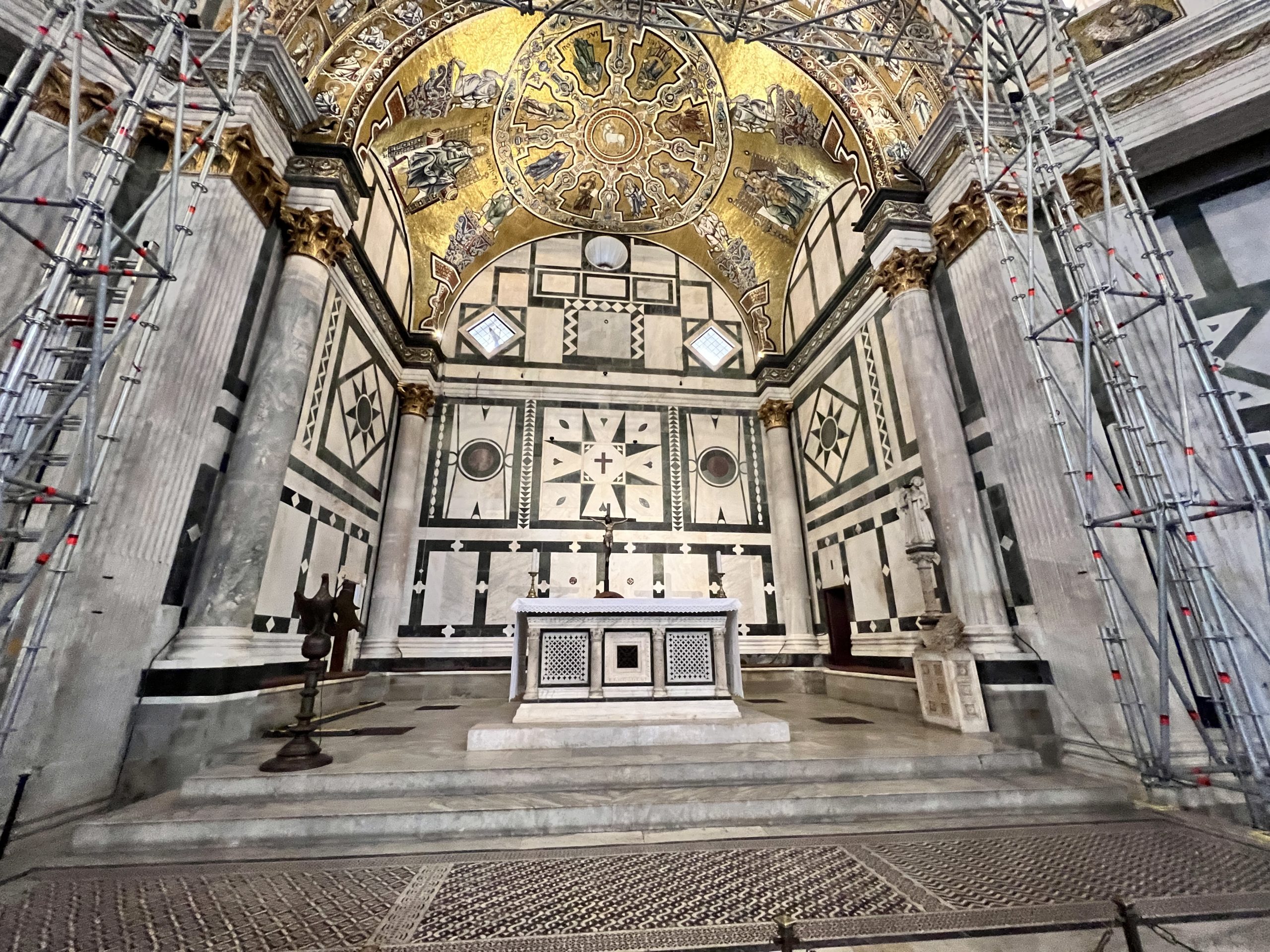Die Kuppel wurde von 1225-75 mit 26 m Durchmessern von Künstlern wie Giotto oder Cimabue mit einem der weltweit größten Mosaikzyklen ausgestaltet.