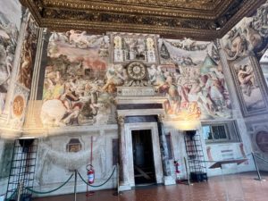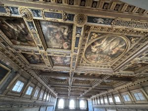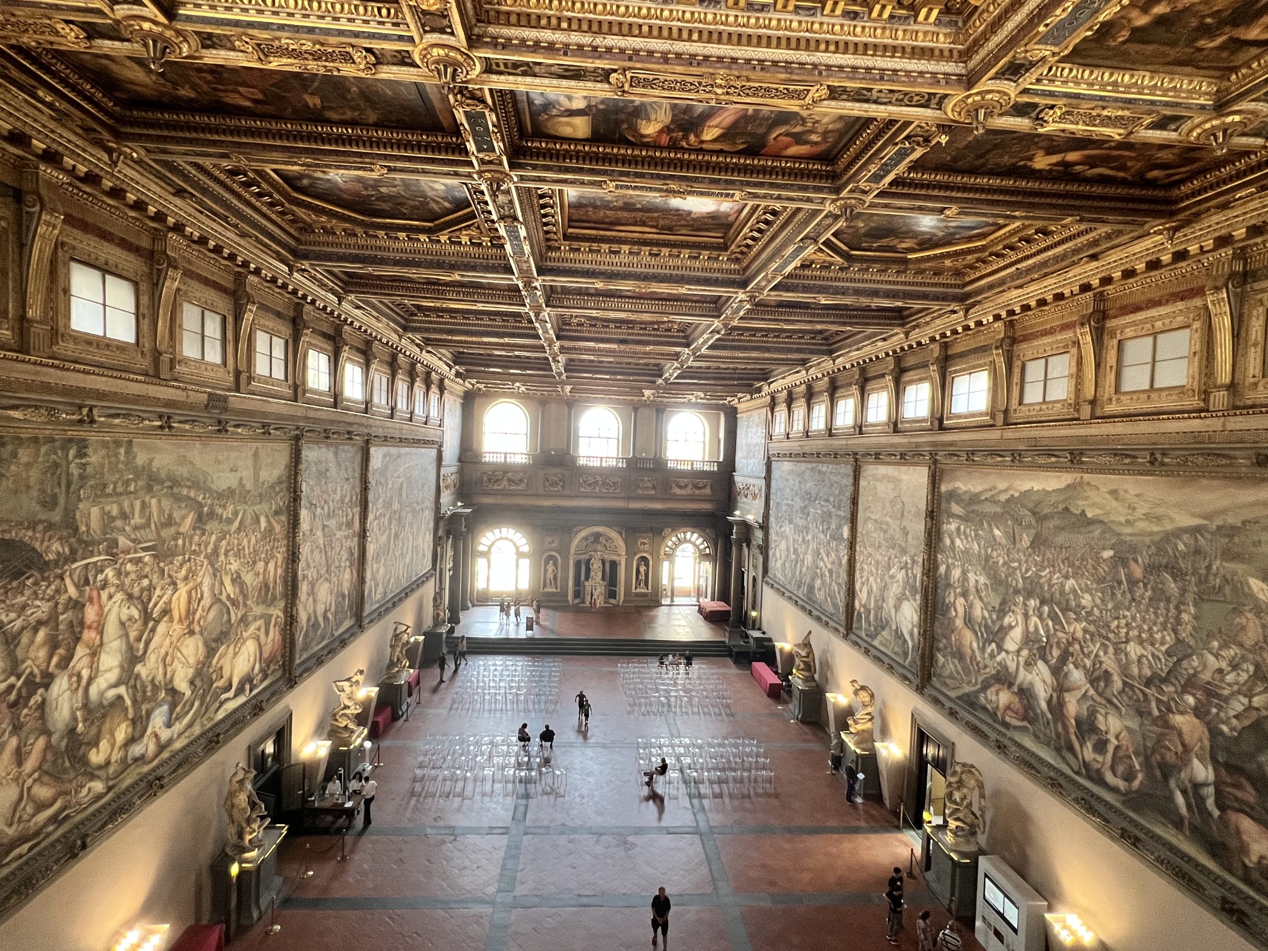 Michelangelo und Leonardo da Vinci sollten die Fresken im Saal der 500 erstellen, dazu kam es nicht. Der Saal ist riesig (54x22m) und die Höhe gigantisch.