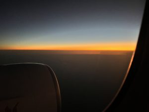 Beim Security Check werde ich wegen meiner neuen Hüfte angehalten. Dort werde ich von eine Frau so richtig begrapscht, obwohl sie mich fragt „Hüfte“?  und ich „Ja, ich habe eine Ausweis mit“.  Ferry’s Rucksack bleibt hängen, bitte alles ausräumen. Zu viele externe Platten führen wir mit, zu viel Leben auf digitalen Seiten.