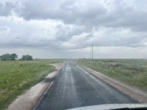 Wir lassen endlos große Felder hinter uns. Einmal kommt ein LKW mit einer wahnsinnigen Geschwindigkeit auf einer einspurigen Straße entgegen. Man könnte es mit der Angst zu tun bekommen.