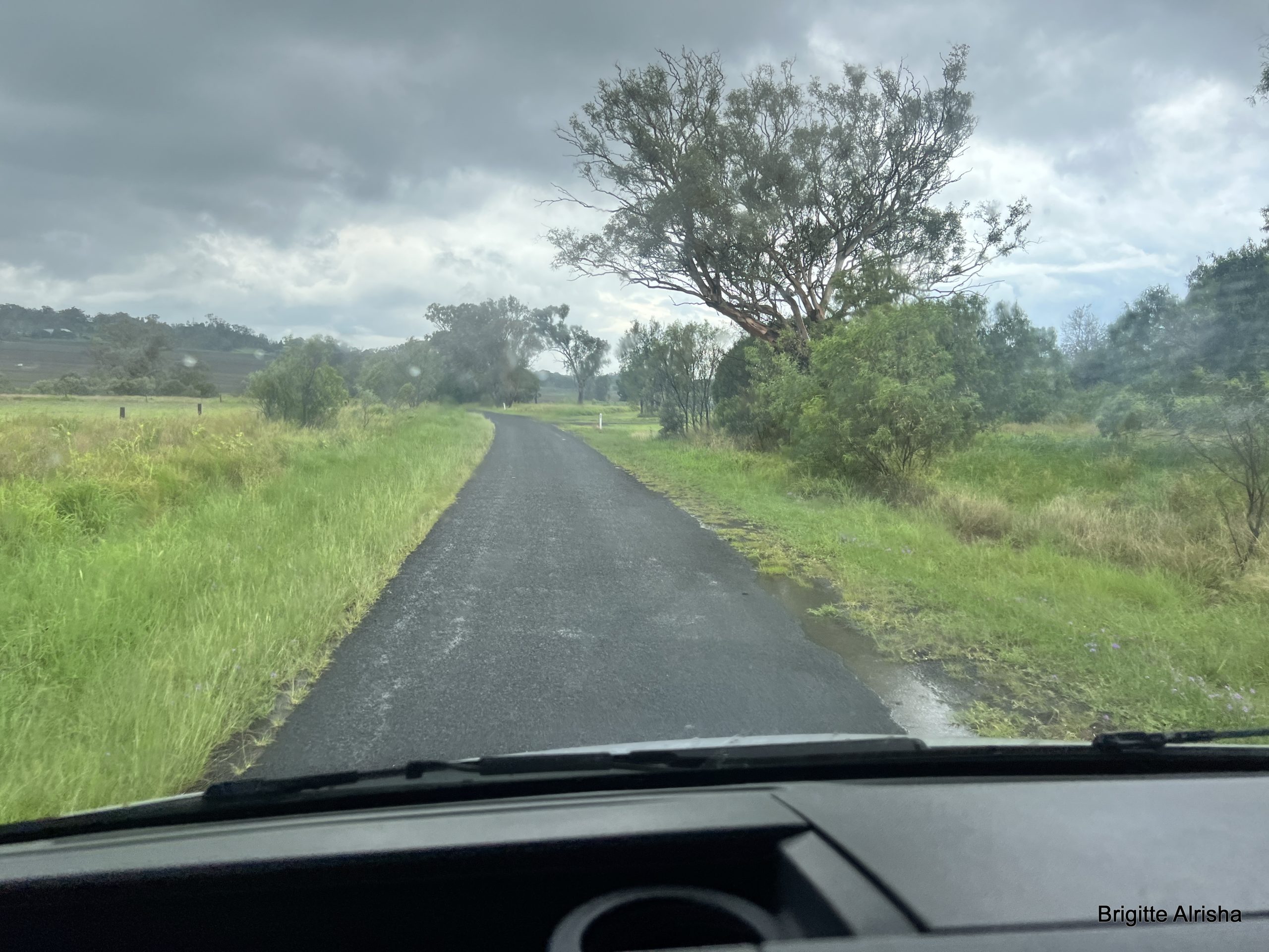 Der Regen wird stärker, aber es schüttet nicht. Die Straßen sind teilweise in einem schlechten Zustand und es bilden sich Lacken. Die Straßen werden immer schmäler, bis wir auf geteerten Feldwegen fahren. Ein Vorteil haben die Straßen, dort ist niemand unterwegs.