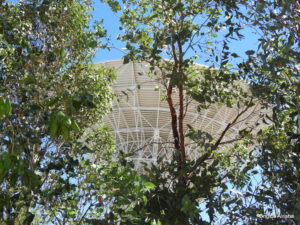 Der Besucherbereich der Anlage ist von 09-17 Uhr frei zugänglich und völlig automatisiert. Neben Videovorträgen gibt es eine Ausstellung und man darf sich ein einem gewissen Bereich einem der riesigen Radioteleskope (über 22m hoch) nähern. Die anderen stehen ebenfalls auf Gleisen und können gemeinsam angeordnet werden um die Kapazität zu steigern. Wir können gerade beobachten wie ein Service Techniker ein Teleskop mit Treibstoff betankt, damit es bewegt werden kann. Von den Astronomen und Astrophysikern fehlt aber jede Spur, denn heutzutage sind diese Anlagen alle vernetzt und werden mittels Computer gesteuert.