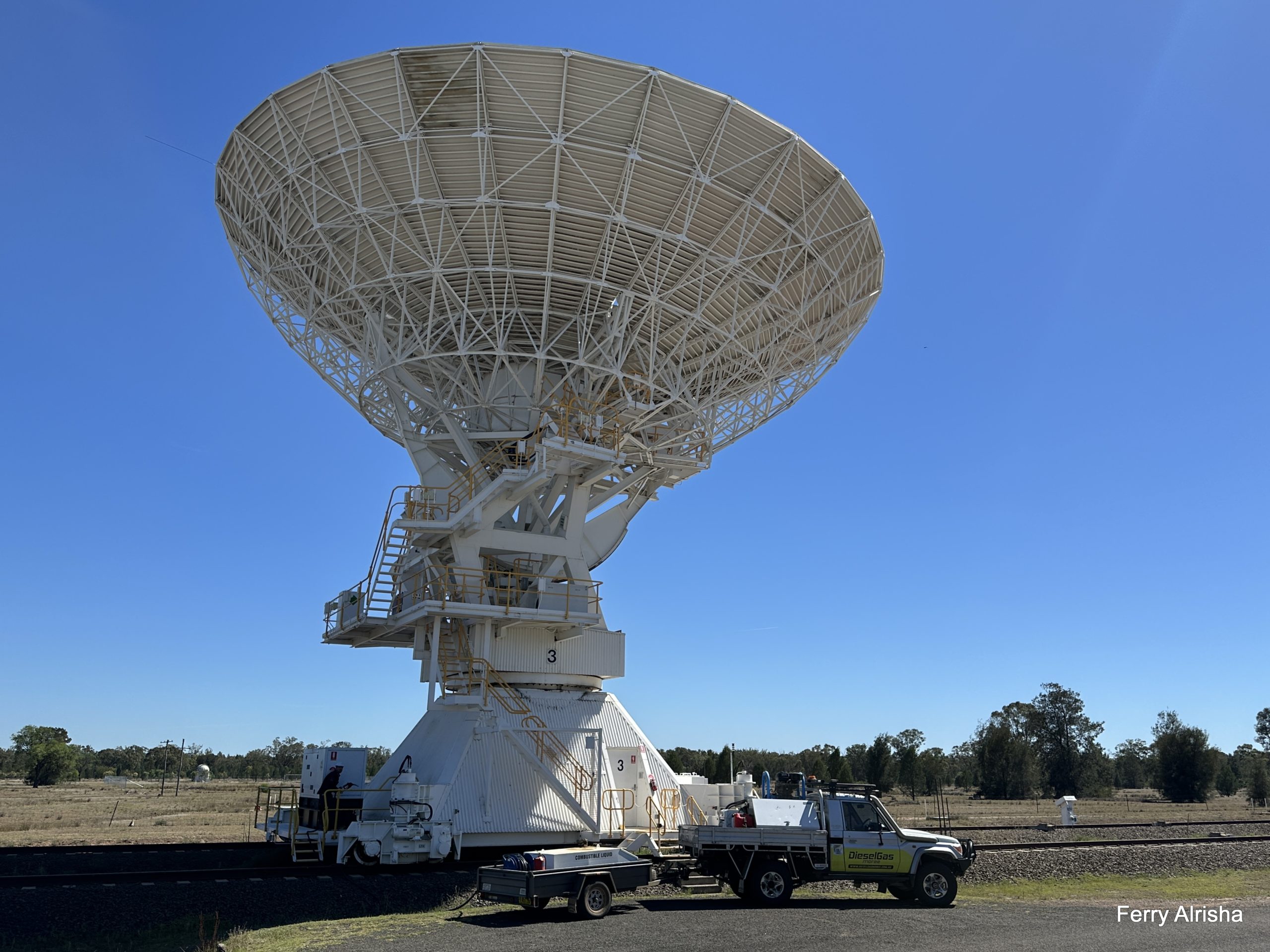 Der Besucherbereich der Anlage ist von 09-17 Uhr frei zugänglich und völlig automatisiert. Neben Videovorträgen gibt es eine Ausstellung und man darf sich ein einem gewissen Bereich einem der riesigen Radioteleskope (über 22m hoch) nähern. Die anderen stehen ebenfalls auf Gleisen und können gemeinsam angeordnet werden um die Kapazität zu steigern. Wir können gerade beobachten wie ein Service Techniker ein Teleskop mit Treibstoff betankt, damit es bewegt werden kann. Von den Astronomen und Astrophysikern fehlt aber jede Spur, denn heutzutage sind diese Anlagen alle vernetzt und werden mittels Computer gesteuert.