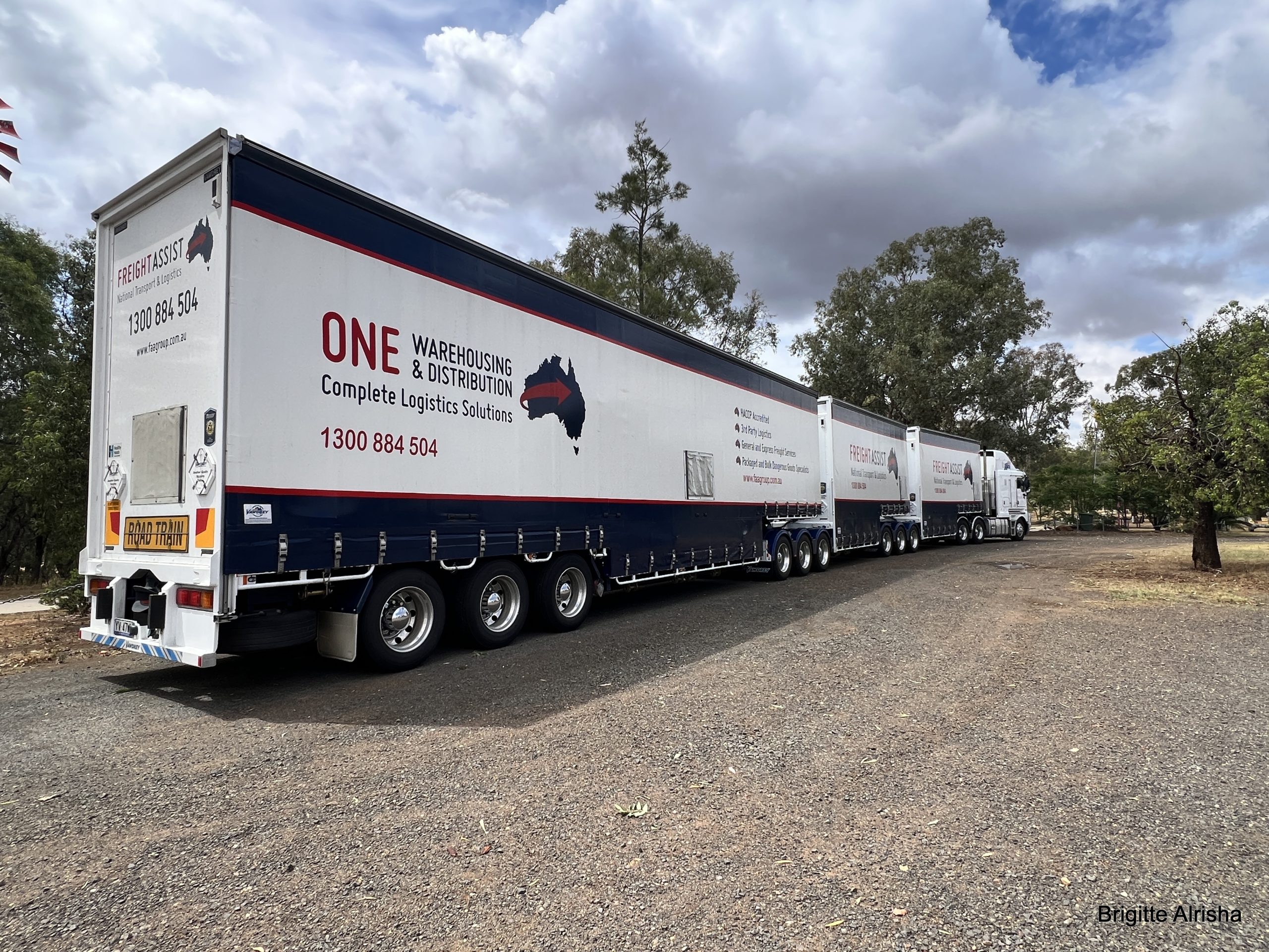 Auf diesem Parkplatz steht endlich mal ein langer Truck, bis jetzt sind sie uns nur entgegen gekommen und somit nicht auf Film zu bannen gewesen. Die Road-Trains haben drei Anhänger und sind bis zu 53 Meter lang. Auch die normalen Truck’s kommen uns länger vor, als bei uns zuhause.