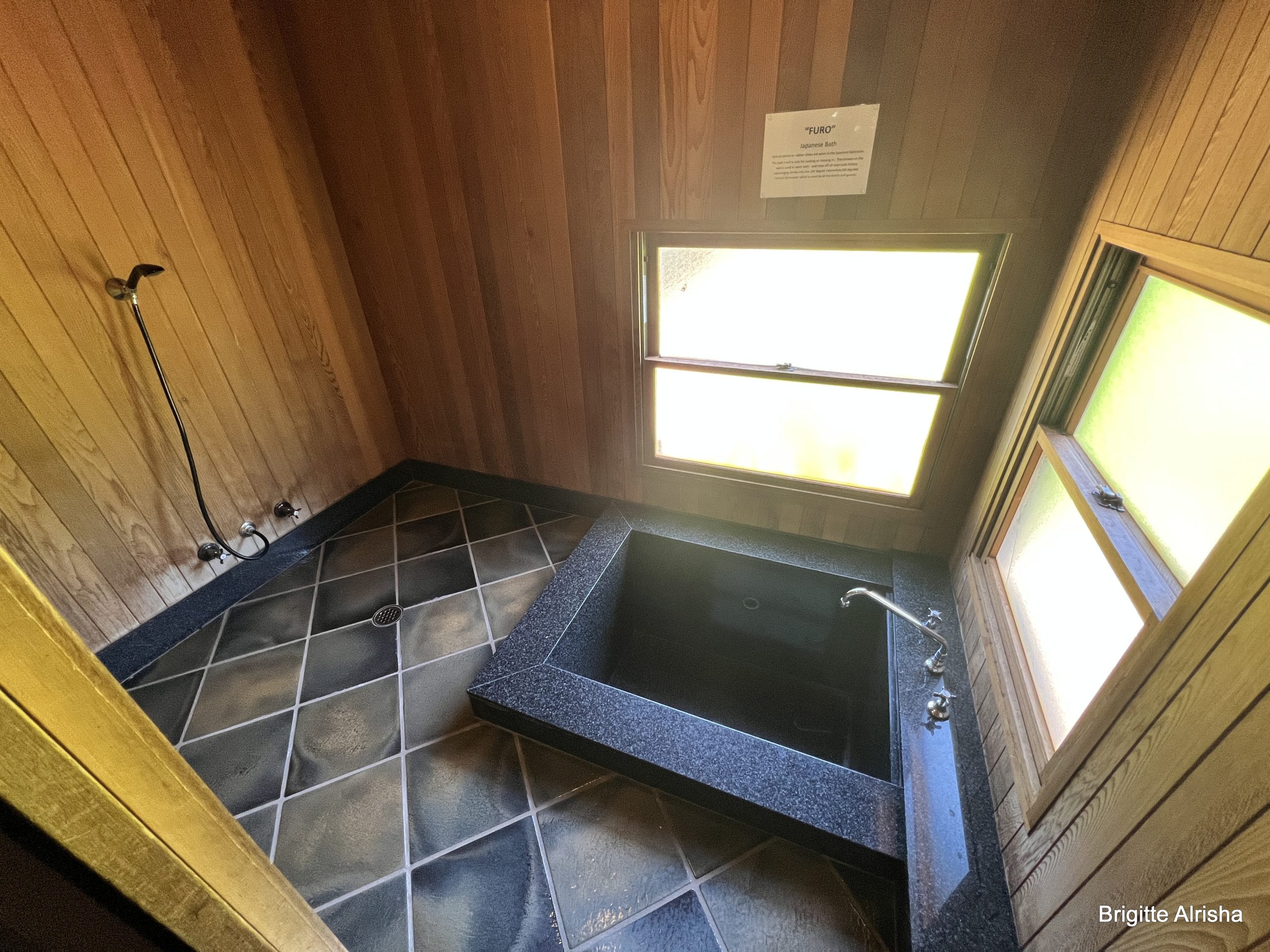 Badewanne und Dusche im Edo Cottage