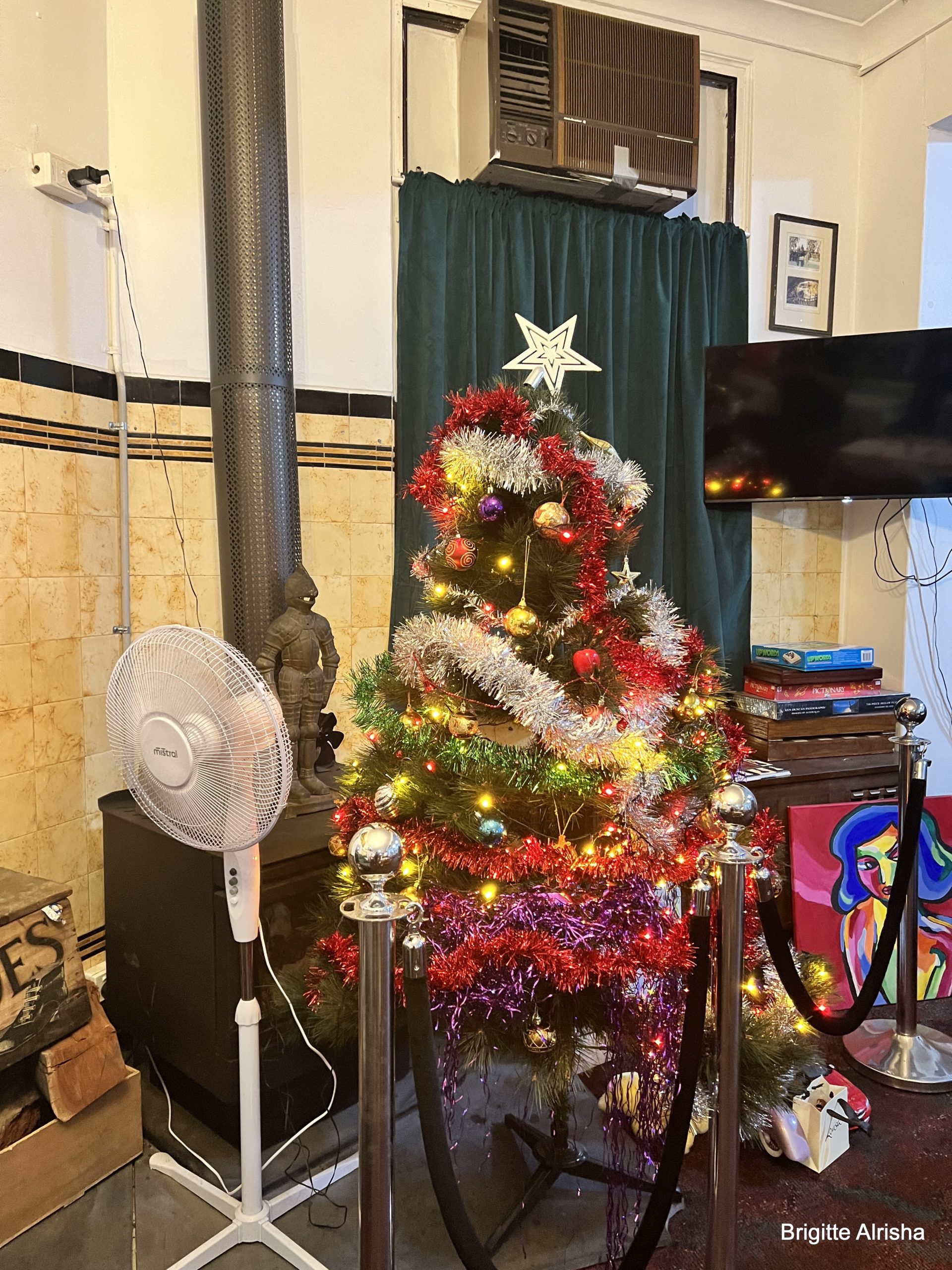 Auch finden wir ein echt uriges Pub, hier gibt es endlich Weihnachtsschmuck in Hülle und Fülle. Man muss sich halt nur daran gewöhnen, dass der in Betrieb befindliche Ventilator neben dem Christbaum steht. Merry X-Mas!