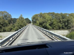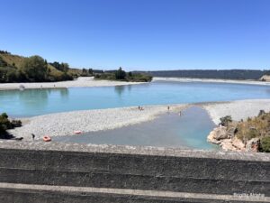 Wir queren den Rakaia River über eine einspurige Brücke.