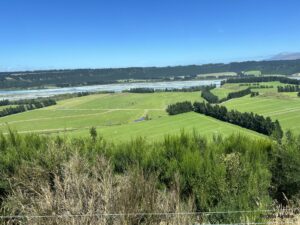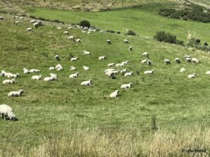 Es gibt hier viel Viehwirtschaft. Endlich sehen wir auch viele Schafe. Leider gibt es nicht mehr so viele wie früher, da die Nachfrage deren Fleisch und Wolle stark nach gelassen hat und die Neuseeländer damit keinen Profit mehr machen können.