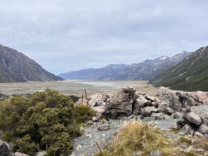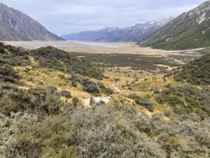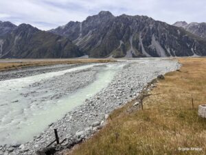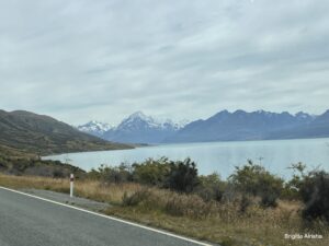 Am nächsten Tag soll es nochmals zum Lake Pukaki gehen, aber diesmal weiter bis zum Aoraki Mount Cook (3754m). Er ist die höchste Erhebung in Neuseeland.
