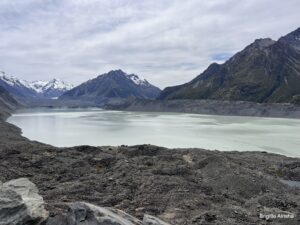 Leider ist es heute bewölkt, trotzdem ist die Fahrt entlang des Sees wunderschön. Ich will unbedingt den Tasman Gletscher sehen. 650 m und 12 Minuten sind angeschrieben.