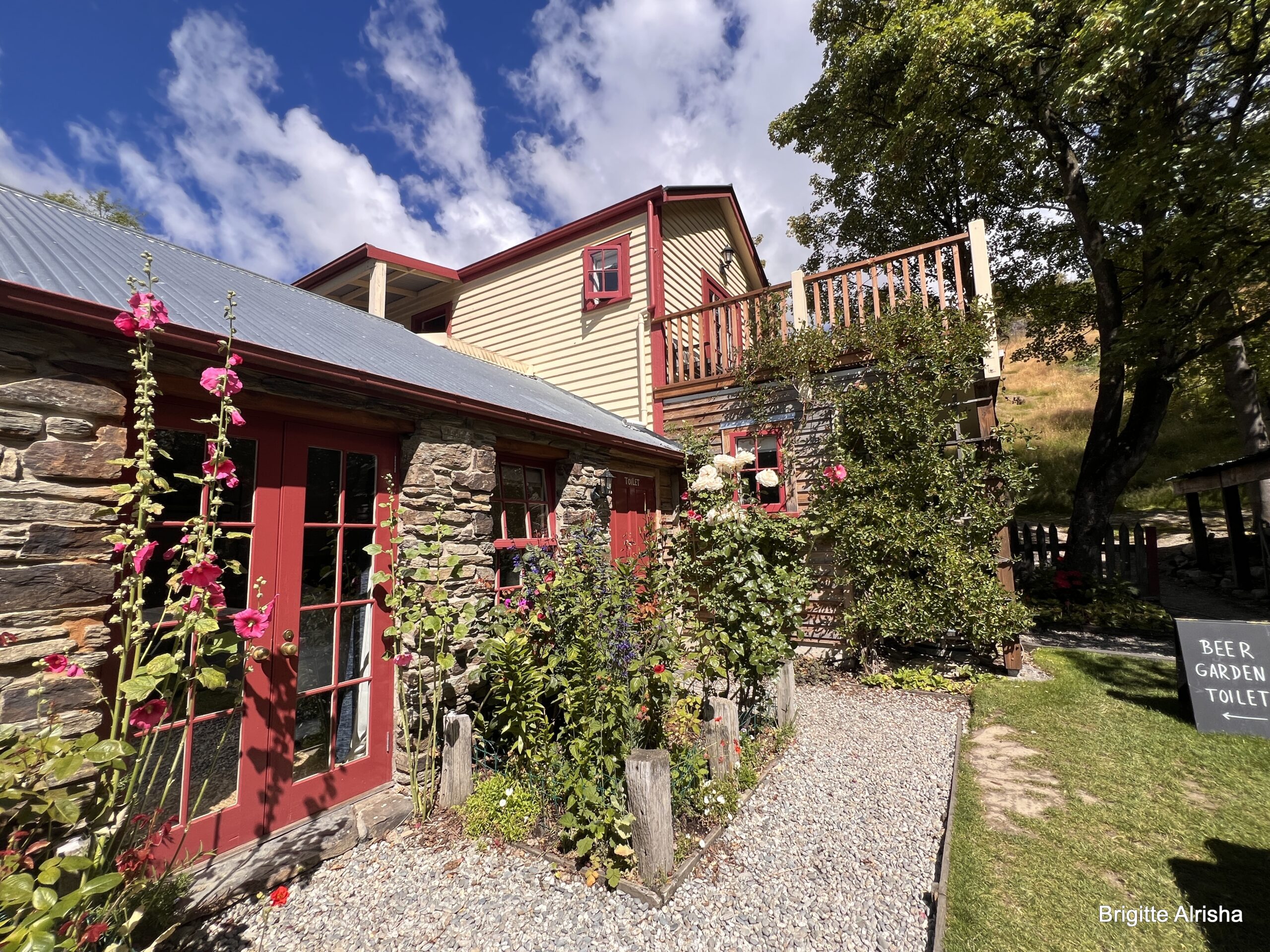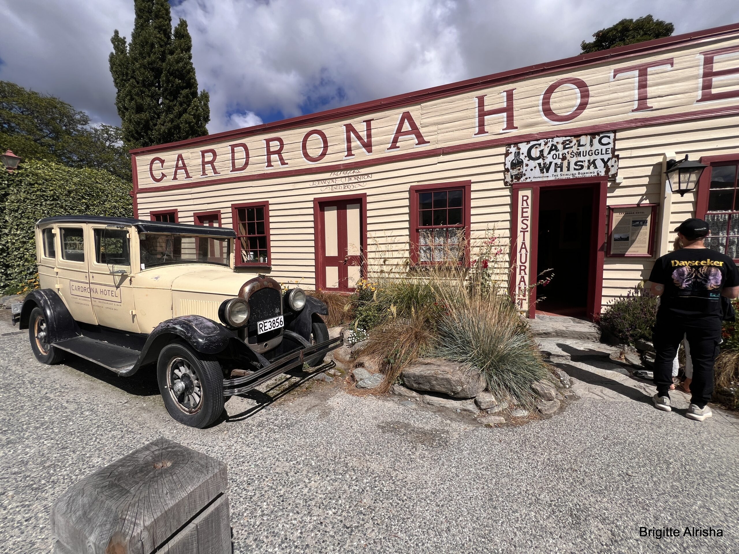 Auf 550 m die erste Ortschaft. Cardrona ist ein beliebtes Skigebiet mit dem gleichnamigen Berg (1936m). Im Ort gibt es das älteste Hotel Neuseelands. Wir bleiben stehen, A wollen wir eine Pause machen und B wollen wir uns das Hotel ansehen.