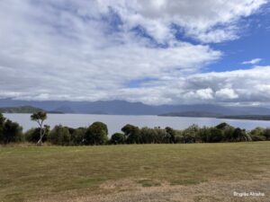 Wir fahren auch am Lake Te Anau ein Stück entlang. Eigentlich hieß er Te Ana-au, was so viel wie „Höhle des wirbelnden Wassers“ heißt. Er ist 65 km lang, 10 km breit und hat eine Fläche von 344 km².
