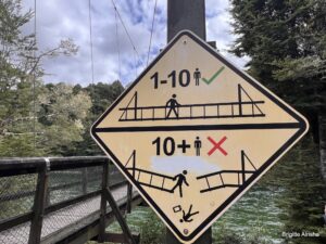 Hier werden wir gewarnt vor einbrechender Brücke und fallendem Handy. Laut Google Maps soll es gleich daneben einen Drehplatz zu „Herr der Ringe geben“. Ferry hat recherchiert und nichts dazu gefunden.