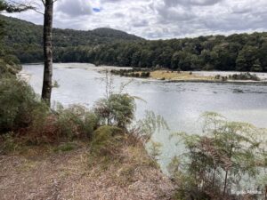 Heute ist nicht so ganz unser Tag, entweder ist die Straße gesperrt oder der Lookout ist mit Gebüsch zugewachsen. Erst bei der Rainbow Bridge, hier ist ein Einstieg zum Kepler Track werden wir belohnt.