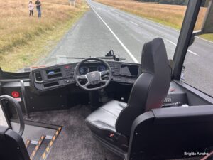 der Fahrer sitzt mittig, der Sitz lässt sich drehen