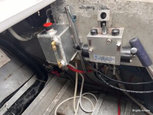 In der Mechanik muss ein großes Motorservice gemacht werden. Das mache ich komplett selbst, bis auf die Reparatur der Seewasserpumpe, die wieder beschlossen hat zu lecken. Der Windpilot ist ebenfalls beim Unfall beschädigt worden und harrt seiner Reparatur. Die Teile haben wir mitgebacht. Auch das machen wir selbst.