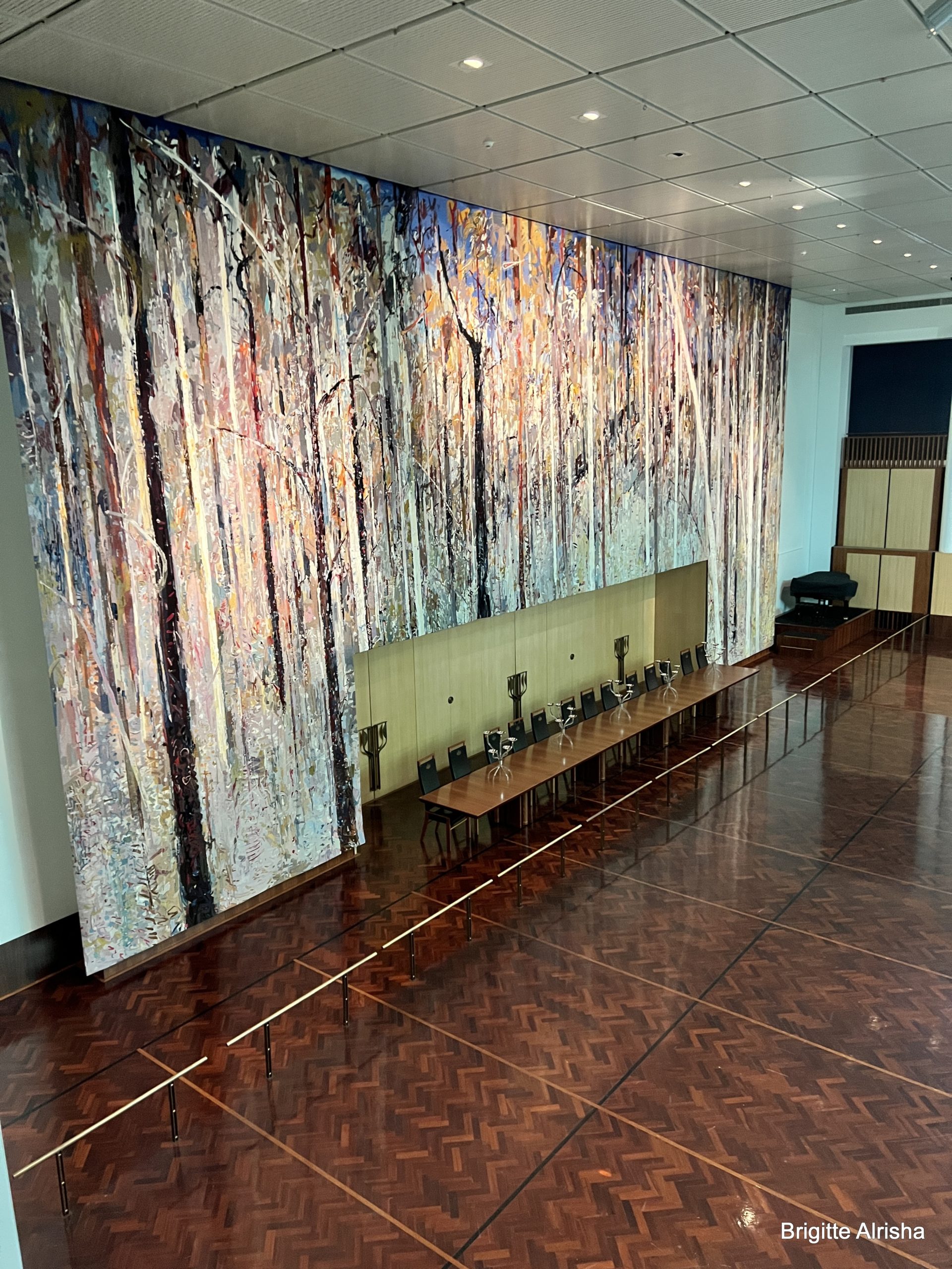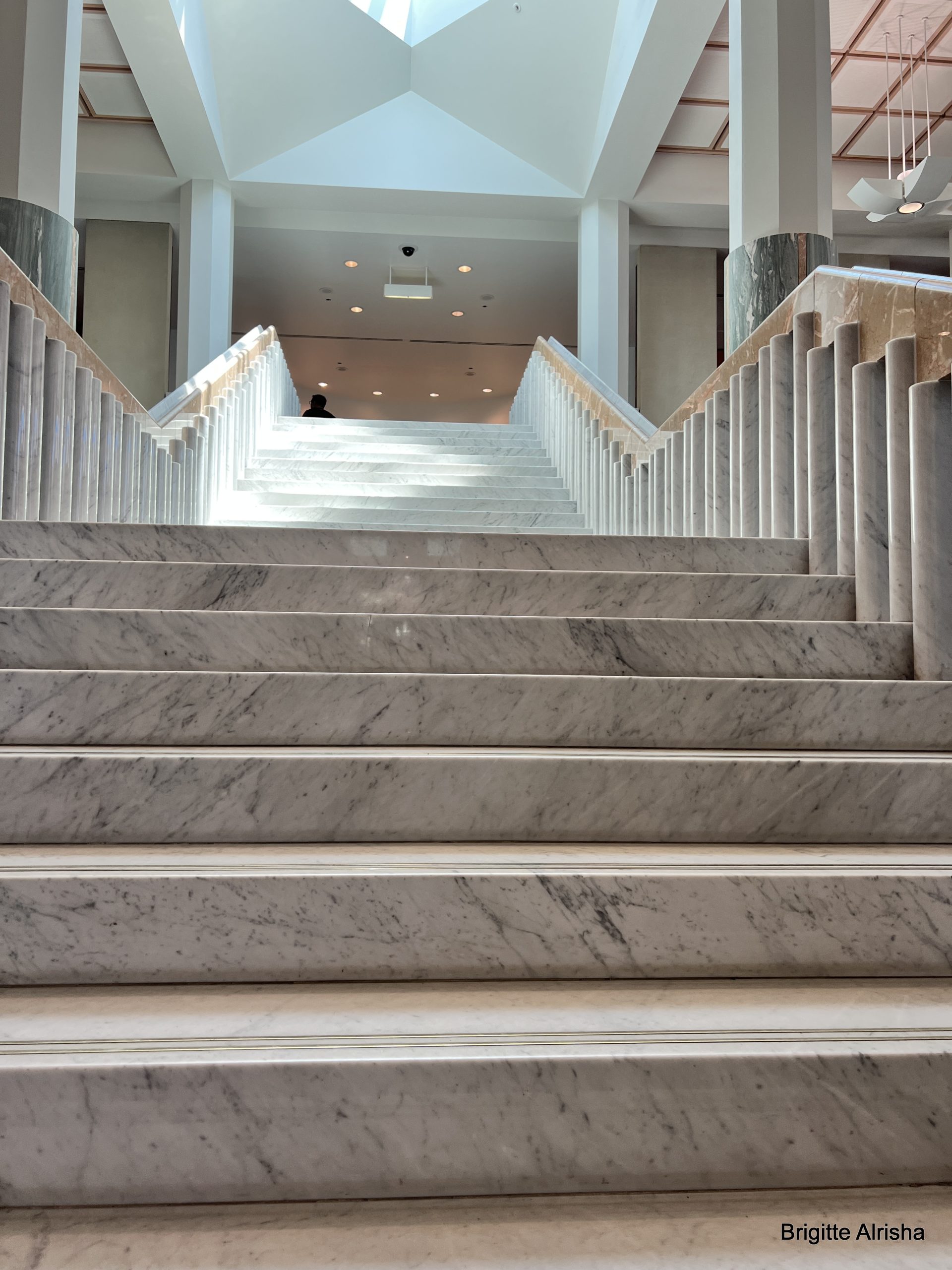 Wir sehen uns nur das neue Parlament genauer an. Der Eintritt ist gratis. Das Gebäude steht auf einem Hügel, nein eher ist es in einen Hügel hineingebaut. Es schaut von vorne fast wie ein Bunker aus.