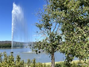 Wir besuchen auch den künstlichen Lake Burley Griffin. Er erinnert uns ein wenig an die Alte Donau, nur dass er zusätzlich einen Springbrunnen hat, der das Wasser 114 Meter in die Höhe schießt. Er ist Teil eines Gedenksteines für Captain Cook.