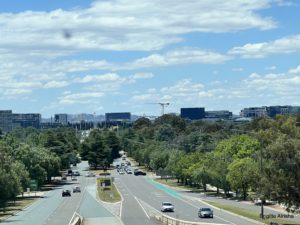 Australien ist groß, hat viel Platz und somit gibt es viel Grün in und um der Stadt. Deshalb hat sie auch den Spitznamen „Bush Capital“ erhalten.  Die Straßen sind breit, trotzdem gibt es fast keine Parkplätze. Die Parkplätze sind unterirdisch, für uns unerreichbar.