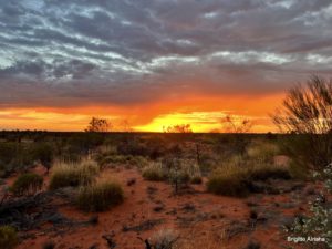 Wir buchen eine Abendveranstaltung für den 2. Tag mit Essen und Drohnenflug mit Sonnenuntergang vorm Ayers Rock (Uluru). Das lange Fahren hat uns müde gemacht, so geht es zeitig ins Bett.  Wir müssen morgen um 04:30 aufstehen, damit wir rechtzeitig beim Rock sind um den Sonnenaufgang miterleben zu können. Am Abend entlädt sich ein Unwetter genau über uns.