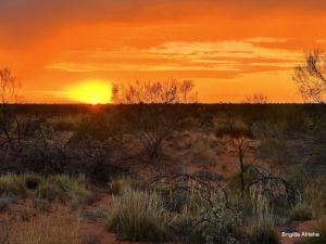 Trotzdem es ist ein einzigartiger Sonnenaufgang und wenn man sich dann umdreht und die Sonne den Berg anstrahlt, beginnt er ganz langsam von unten nach oben rot zu leuchten. Kein Wunder dass dieser Berg heilig ist. Der Uluru ist etwa 3 km lang, bis zu 2 km breit und hat an der Basis einen Umfang von rund 9 km und besteht aus Sandstein der sich ca. 350 m über sein Umland erhebt.