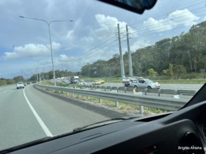 Als wir dort ankommen, gibt es natürlich weit und breit keinen Campingplatz. Um zu unserem Campingplatz zu kommen, muss Ferry weitere 50 km, bzw. 40 Minuten (ohne Stau) fahren und es kostete uns 6 AUD Mautgebühr. Aber wie sonst hätten wir die Ausdehnung von Brisbane erkennen können.