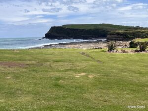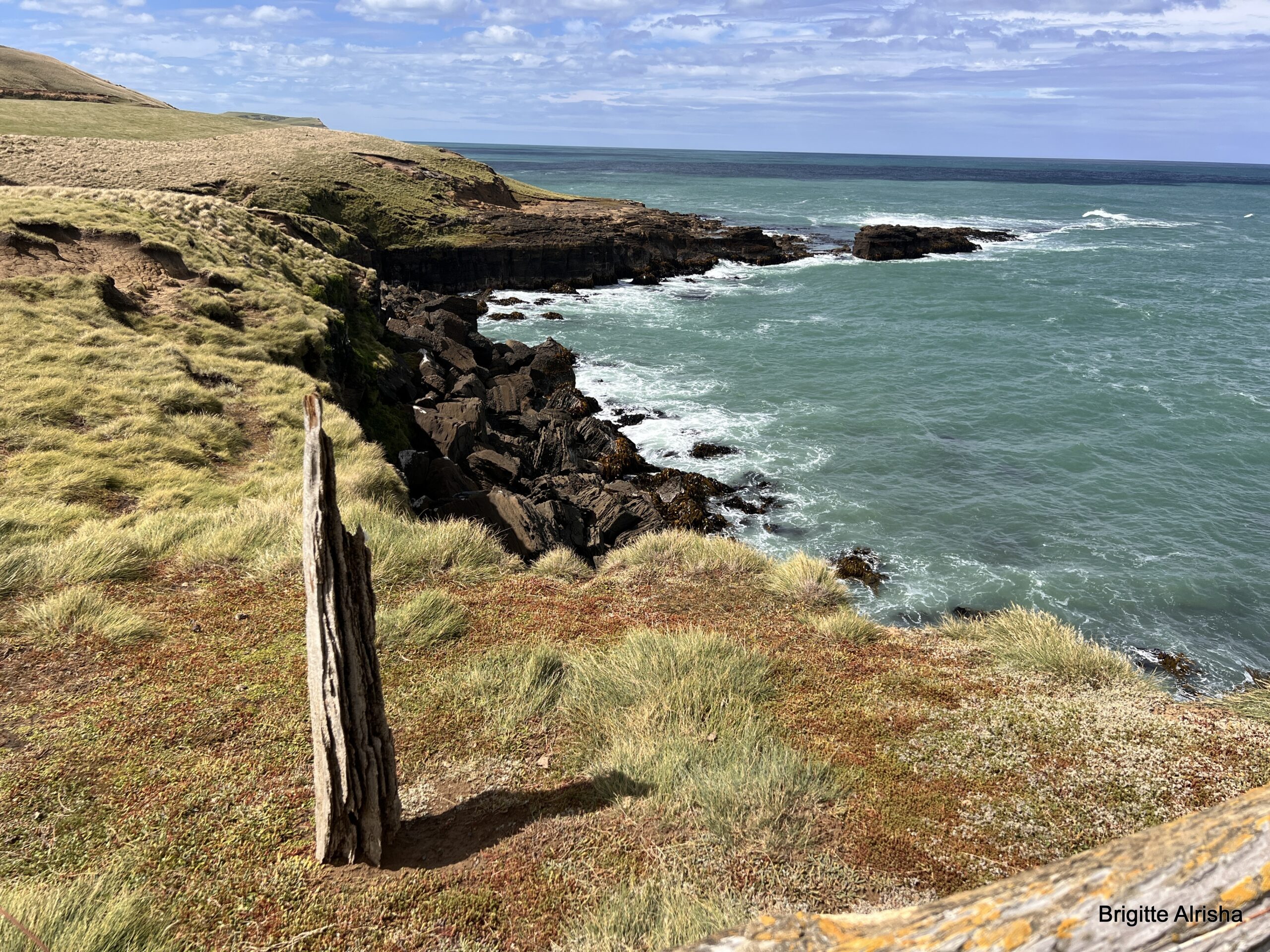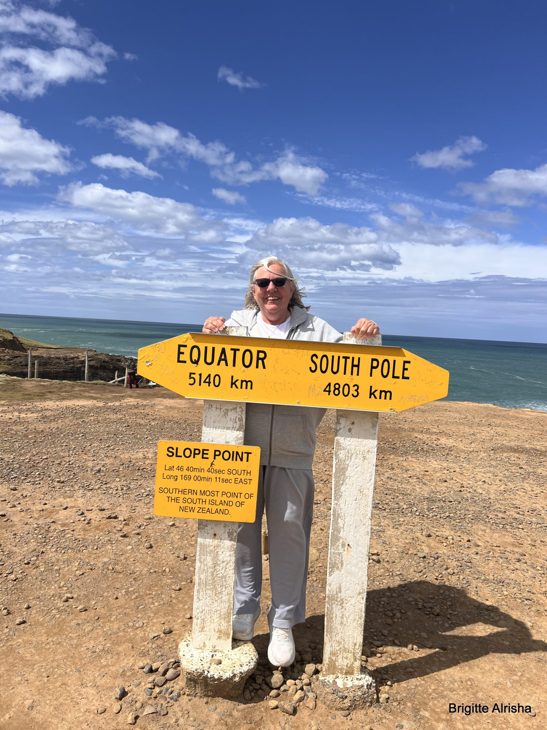 Weiter geht es zum Slope Point. Es ist der südlichste Punkt der Südinsel. Wir befinden uns nun auf 46.40 S 169.0 E. Es ist aber nicht unser südlichster Punkt. Seglerisch war es Deseados 47.45 S 65,54 W (Argentinien) und mit dem Bus waren wir in Rio Gallegos 51.37 S 69.13 W (Argentinien).