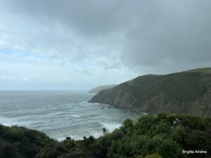 Ferry beschließt im Auto zu bleiben. Was auch gut ist, denn durch den Regen sind die Wege rutschig. Ich gehe nur bis zur Plattform, wo ich Angst bekomme, dass mich der Wind in die Tiefe stürzt. Ich beschließe für mich, ich verzichte auf den Leuchtturm der in 1 km Entfernung steht.